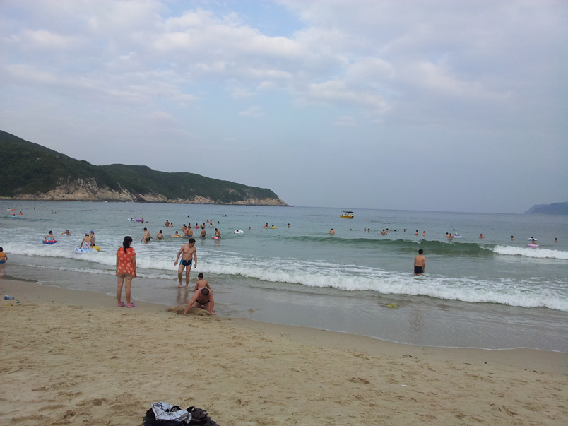 夕阳、沙滩、碧浪、欢声笑语、其乐融融。